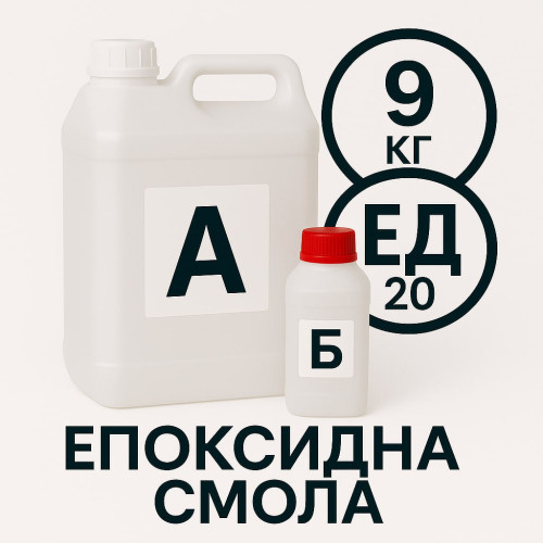 Епоксидна смола ЕД-20 з прозорим затверджувачем A.N.B. у комплекті 9 кг + 0.9 кг — це якісна, кристально чиста смола загального призначення, яка підходить як для творчості, так і для професійного виготовлення меблів. Завдяки високій прозорості (9,5/10), відсутності запаху, оптимальній в’язкості та простому змішуванню вона ідеально підходить для заливки стільниць, картин, біжутерії, посуду, підносів та декоративних виробів.